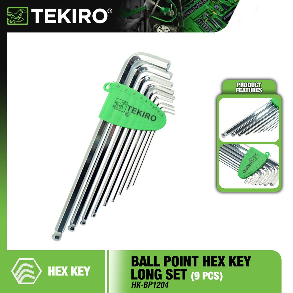 TEKIRO Ball Point Hex Key Long Set 9 Pcs HK BP1204 Allen Key