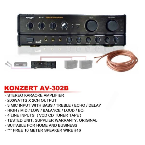 Konzert AV 302B Stereo Karaoke Amplifier 200Watts x 2 Shopee