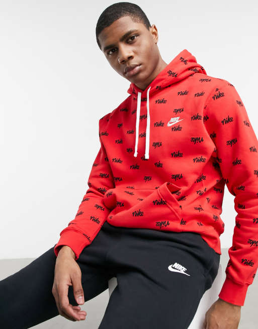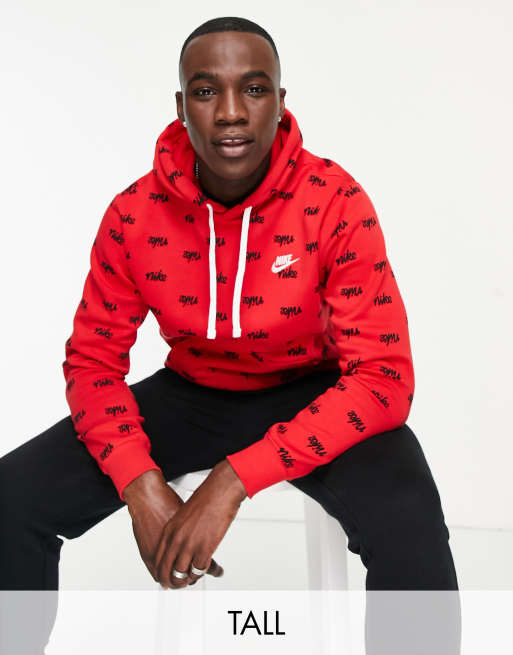Red nike check clearance hoodie, Nike Tall Club all over script logo hoodie in red clearance