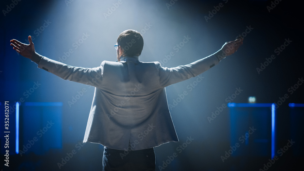 Successful Motivational Speaker Talking about Happiness Success