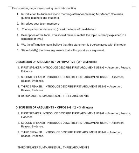 Year 9 English Debating Structure Teaching debate Speech clearance, Solved Debate Negative side debate topic Governments Chegg clearance, Sample of debate script expressions Opening the debate some clearance, Tabroom clearance, Speech Structure Templates Debating SA Incorporated clearance, Academic Debate Script clearance, 3 Ways to Write a Speech if You re Third Speaker wikiHow clearance, Sample Times for a Thirty Minute Classroom Debate with Six clearance, Solved Debate Negative side debate topic Governments Chegg clearance, SOLUTION Suggested debate format Studypool clearance, A Debate Format Worksheets clearance, SUGGESTED DEBATE FORMAT clearance, Learning Classic Debate ppt video online download clearance, Debate preparation templates PDF clearance, template debate.pdf Template for debate speeches Note This clearance, First Negative Speaker Template PDF Tuition Payments clearance, Speech Structure Templates Debating SA Incorporated clearance, DOC First Speaker Affirmative Team Andrea Cordero Academia.edu clearance, First Affirmative Speaker Debating Roles clearance, Debate preparation templates PDF clearance, Speech Structure Templates Debating SA Incorporated clearance, How to structure a FIRST SPEAKER S speech clearance, Speech Structure Template.pdf 1 First Affirmative Speaker clearance, 4 Ways to Begin a Debate wikiHow clearance, INTRODUCTION TO DEBATING SPEAKER ROLES DBAT ppt download clearance, Speech Structure Templates Debating SA Incorporated clearance, Debate First Speaker Refugees according to the Article 1 of the clearance, How to debate first speaker affirmative clearance, First Negative Speaker Template PDF Tuition Payments clearance, How to debate first speaker negative clearance, First Speaker Debating Wiki Fandom clearance, PDF First Affirmative Speaker Template Have Love Academia.edu clearance, First Speaker Script FIRST SPEAKER SCRIPT Good day to the clearance, First Affirmative Speaker Template PDF Argument Reason clearance, Speech Structure Templates Debating SA Incorporated clearance, Product Info: First speaker in clearance a debate .