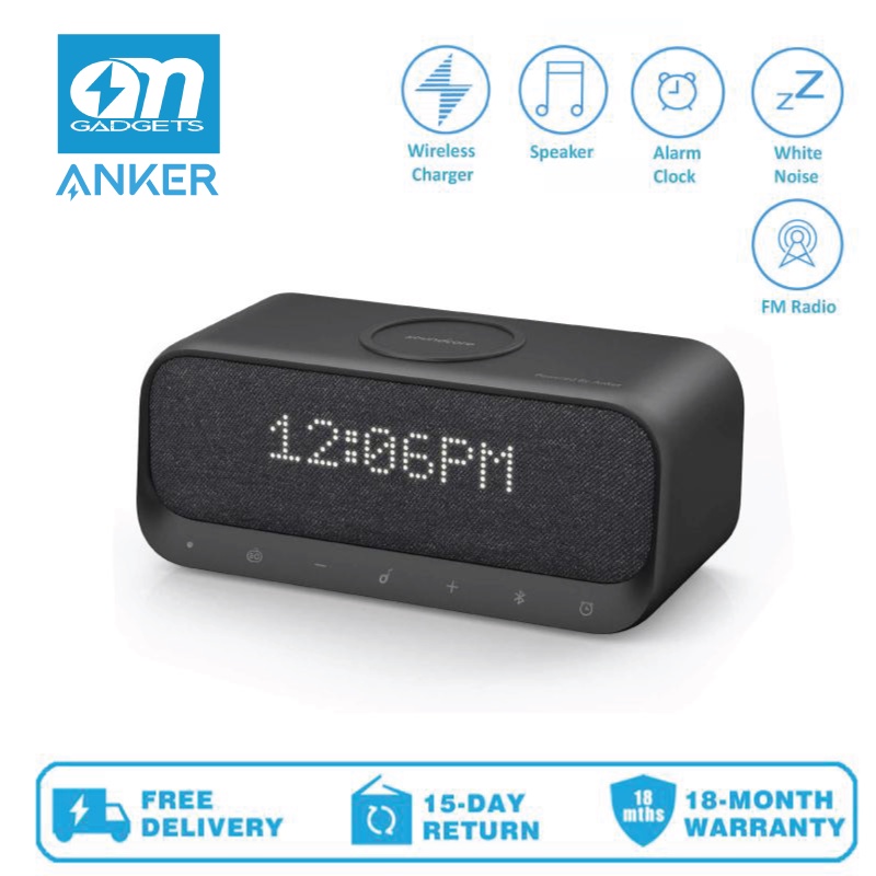 Anker clearance soundcore radio, Anker A3300 Soundcore Wakey Bluetooth Speaker Alarm Clock Stereo Sound FM Radio White Noise Qi Wireless Charger clearance