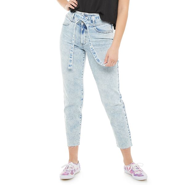 Juniors SO Belted Yoke High Rise Mom Jeans