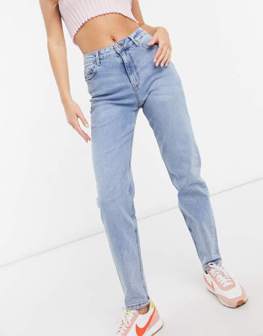 Pieces kesia high waisted mom jeans in bleach wash ASOS