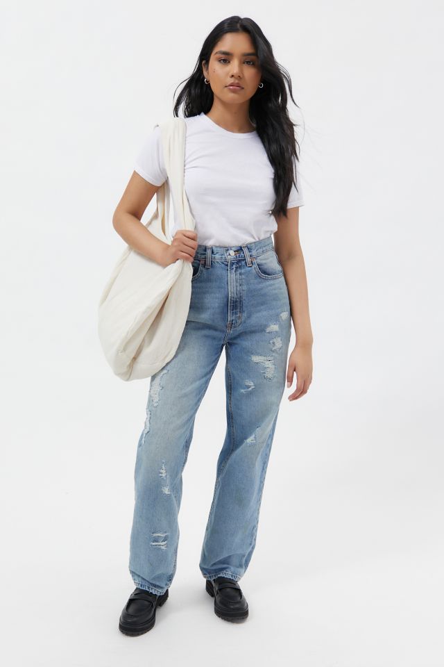 BDG High Waisted Baggy Jean Distressed Light Wash
