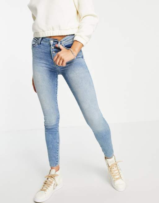 True Religion halle highrise exposed button straight leg jeans in 5 am light