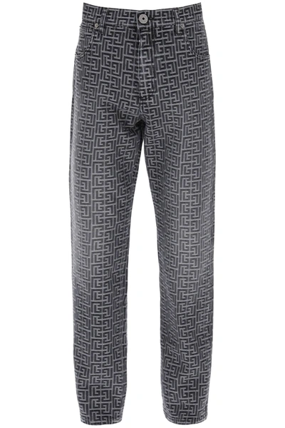 Balmain Jeans With Monogram Motif All over In Grey ModeSens