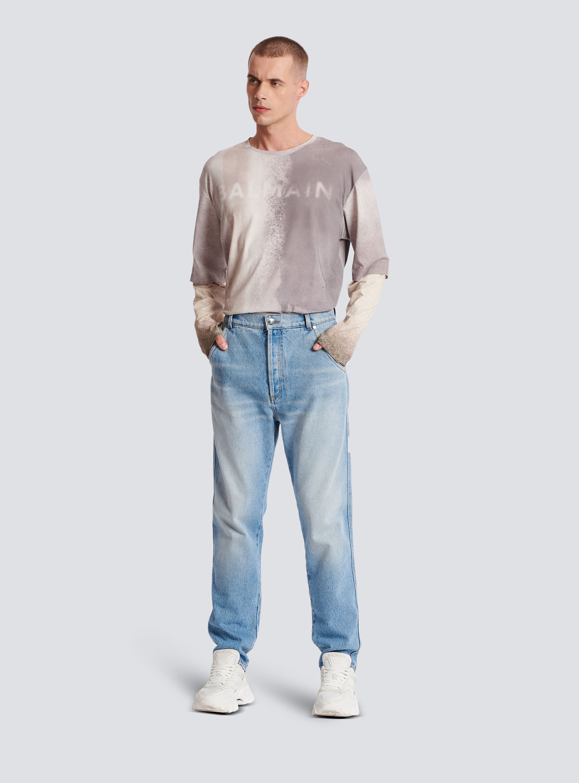 Balmain monogram jacquard straight leg Jeans Farfetch
