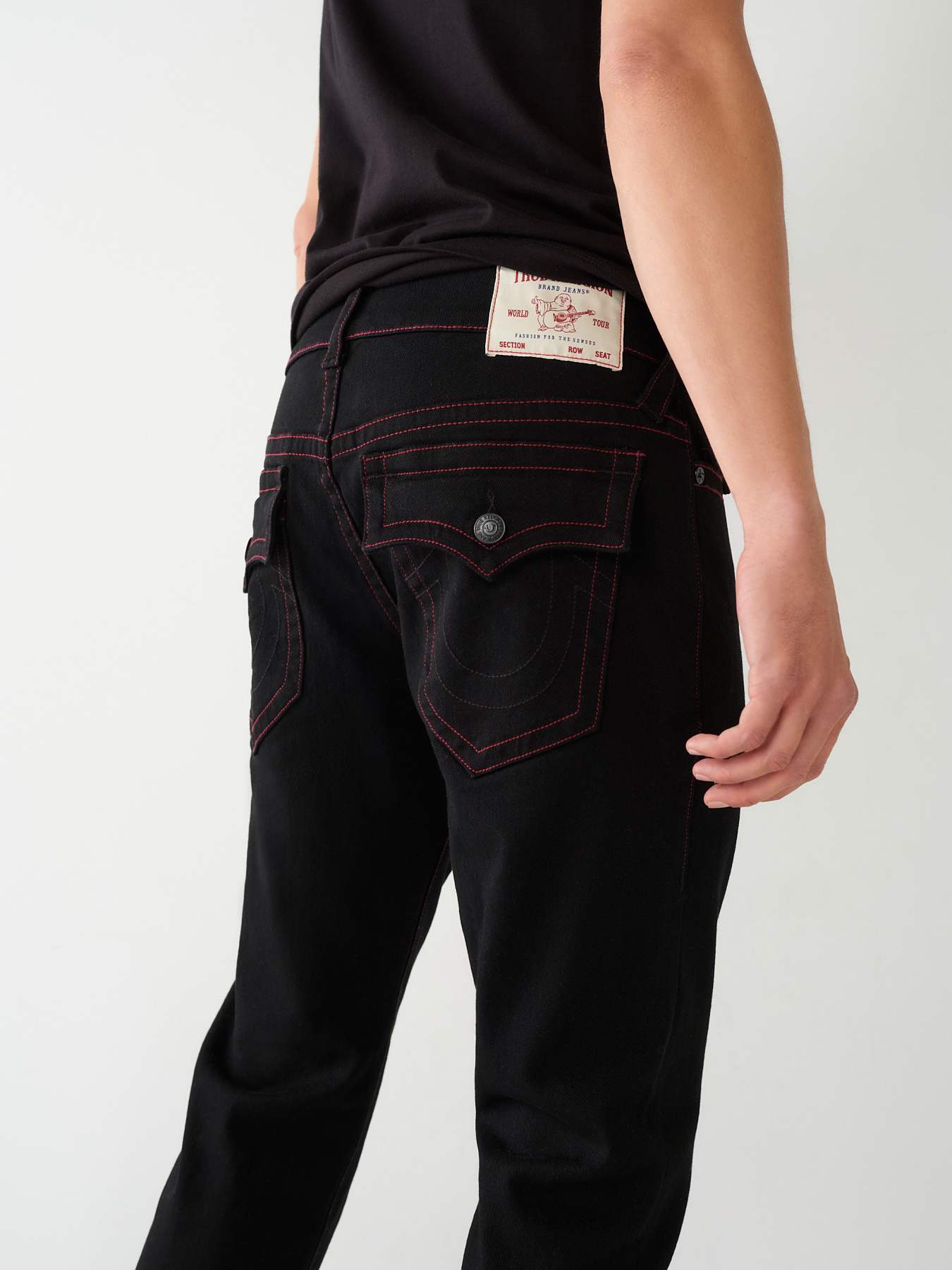 NEW TRUE RELIGION 149 BLACK WHITE STITCH FLAP RICKY STRAIGHT JEANS SZ 32 34 eBay