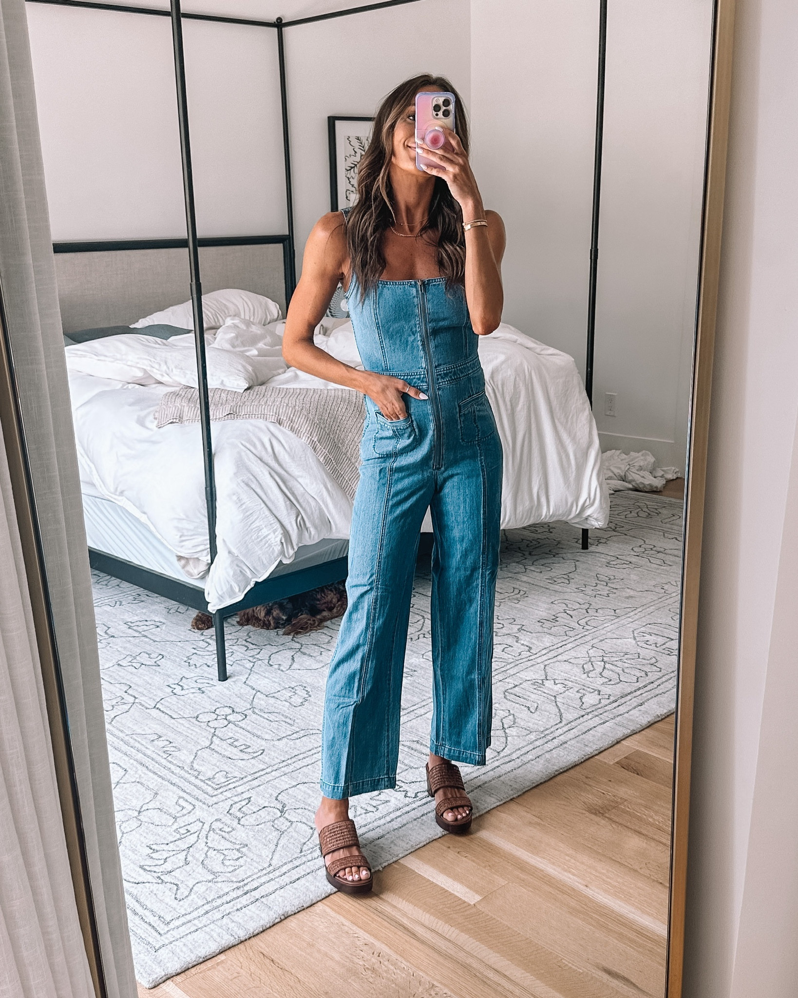 Denim Seamed Zip Up Jumpsuit in curated on LTK
