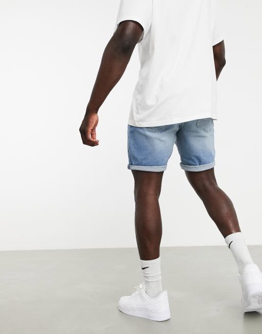 Asos mens denim clearance shorts, ASOS DESIGN shorter length denim shorts with rips in light wash clearance