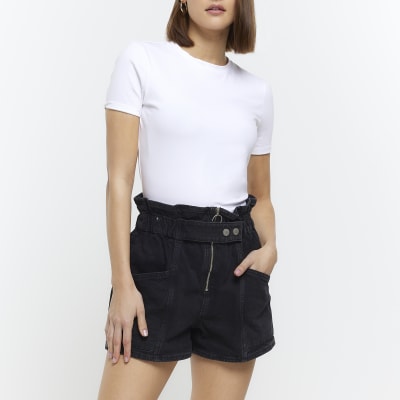 Black paperbag denim clearance shorts