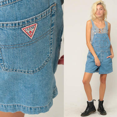 Guess clearance overall shorts, Guess Overalls 90s Shorts Denim Shortalls Women Bib Jean Overalls clearance