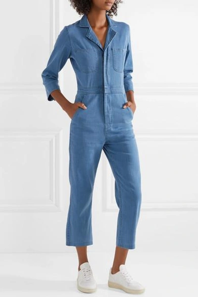 J Brand Traveler Cropped Denim Jumpsuit In Mid Denim ModeSens