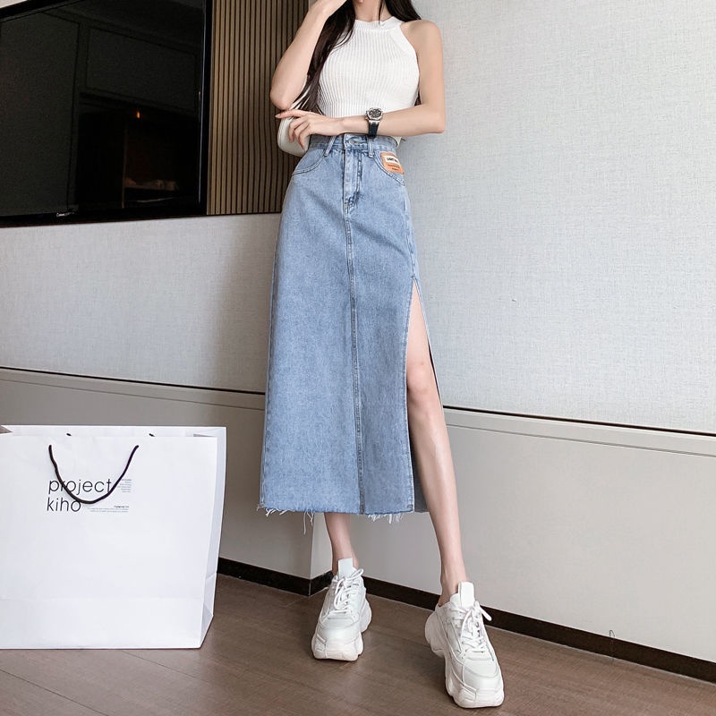 denim skirt maong skirt Below the knee stretchable Lazada PH
