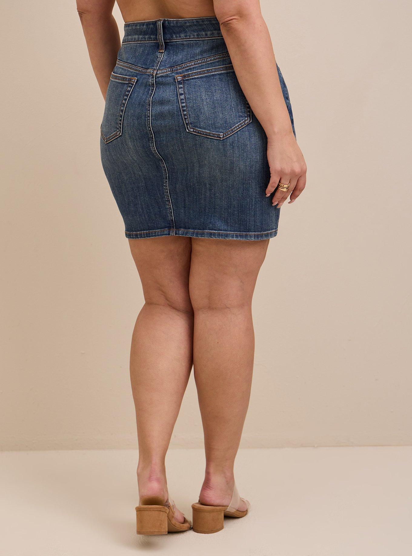 Plus Size Denim Mini Skirt Distressed Medium Wash Torrid