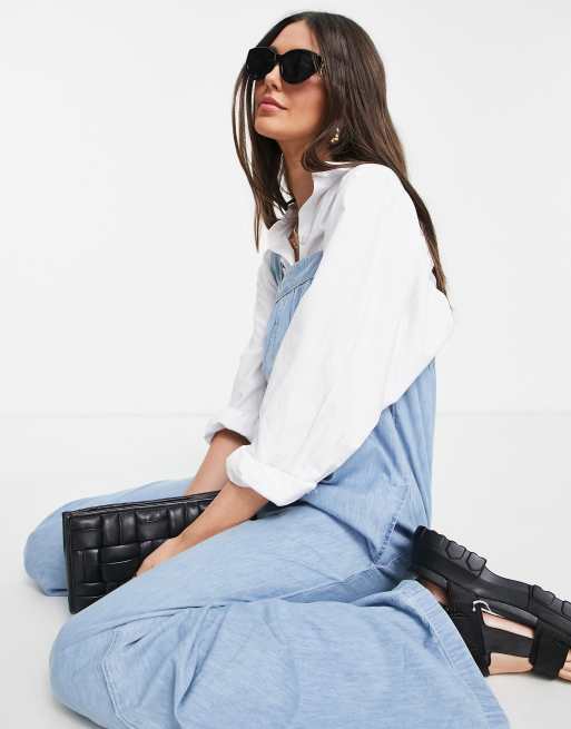Asos clearance tall dungarees, ASOS DESIGN Tall soft denim smock jumpsuit in lighwash ASOS clearance