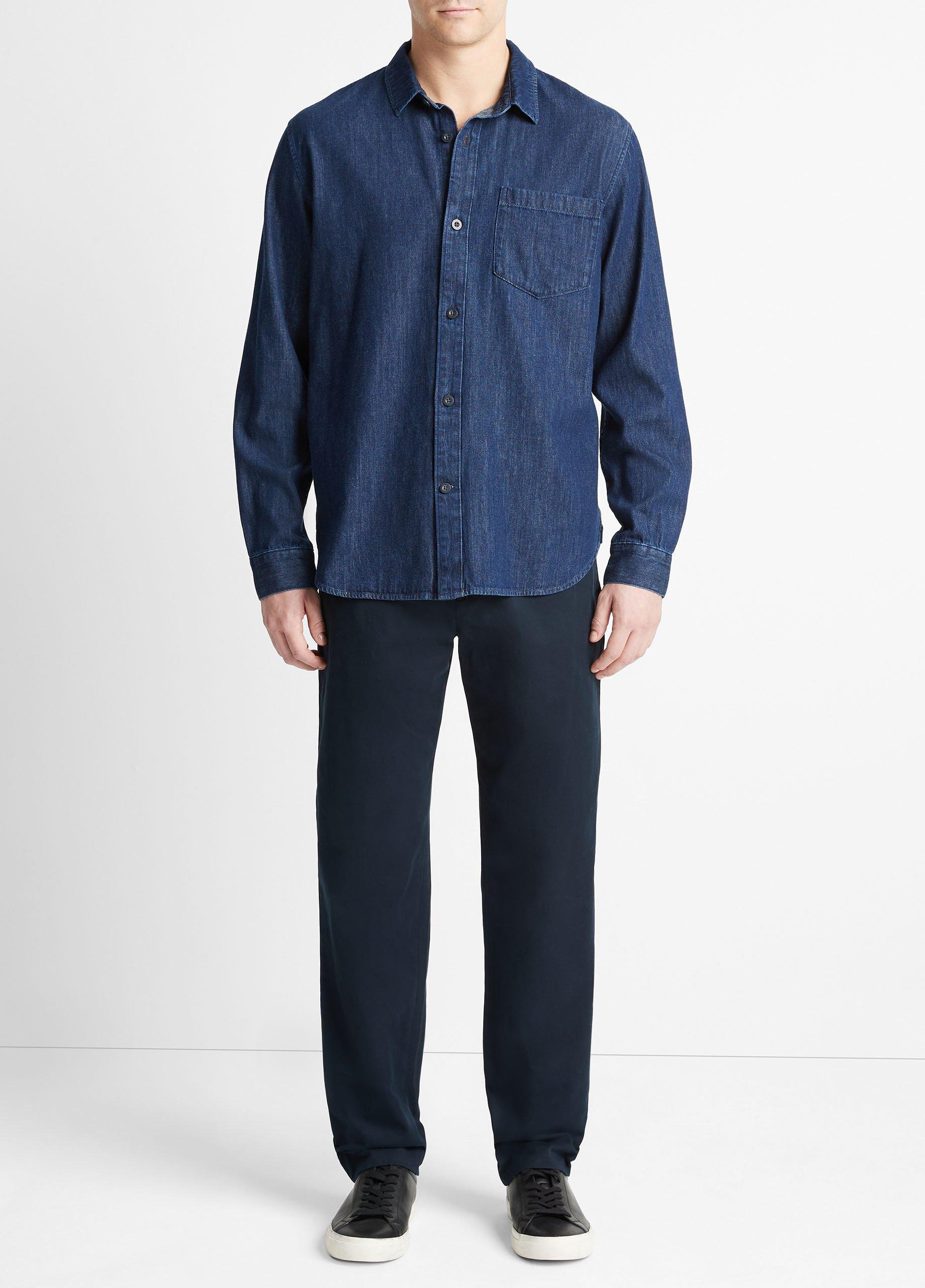 Vince Men s Denim Button Down Shirt Size L Dark Blue Wash eBay