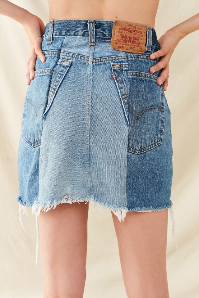 Urban Renewal Recycled Levi s Two Tone Patched Denim Mini Skirt