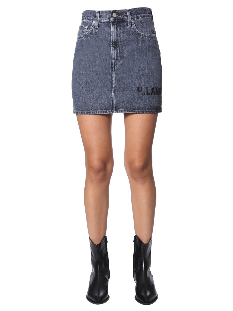 HELMUT LANG DENIM COTTON MINI SKIRT WITH EMBROIDERED LOGO