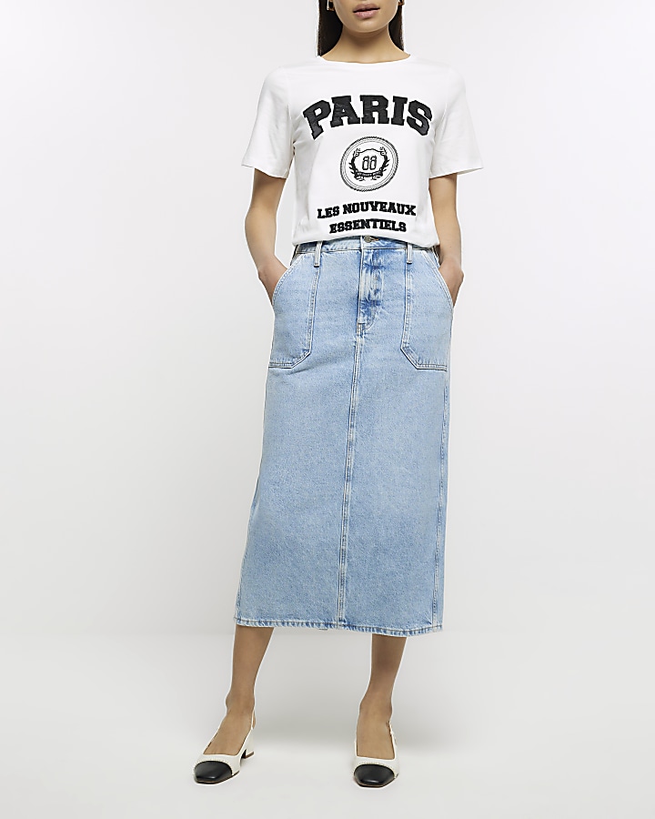 Denim midi skirt clearance river island