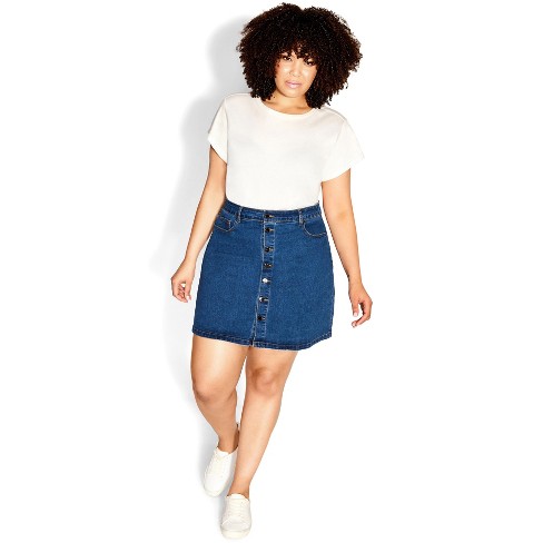 Women s Plus Size Island Denim Skirt Mid Denim City Chic Target