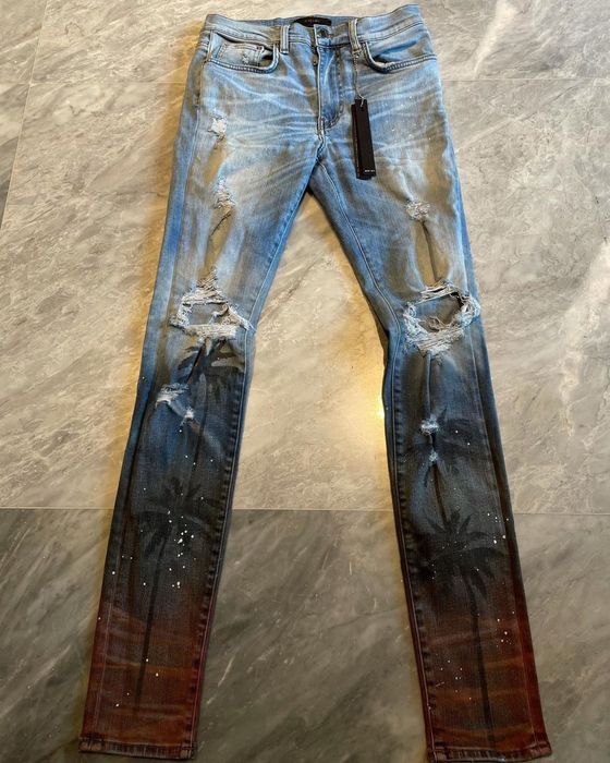 Amiri jeans palm clearance tree, Amiri Palm Tree Distressed Jean clearance