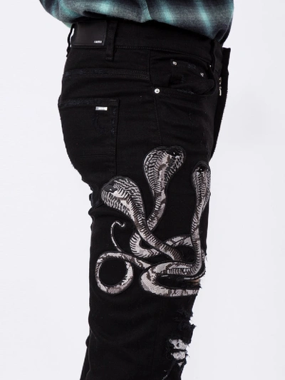 Amiri Snake Embroidered Distressed Skinny Jeans in Black for Men