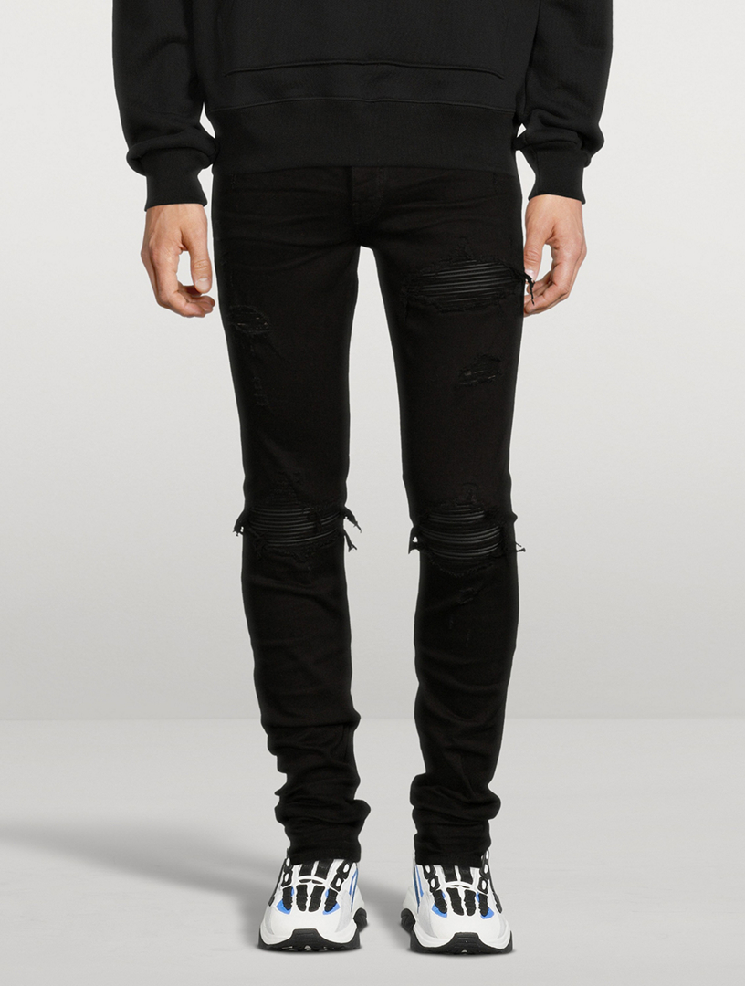 AMIRI MX1 Skinny Fit Distressed Leather Panelled Stretch Denim
