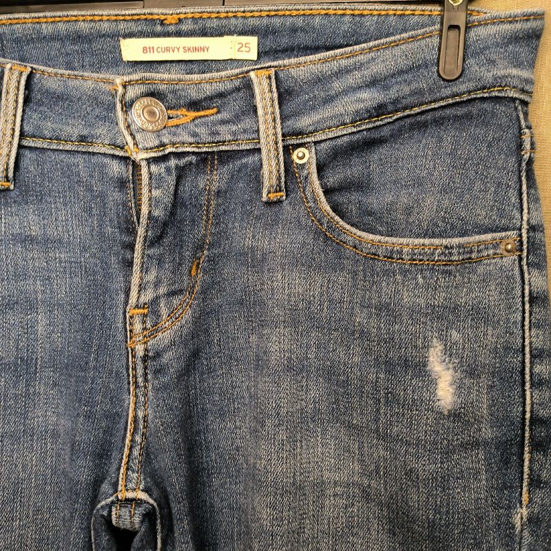 LEVI s 811 Curvy Skinny Jeans Women s W29 L32 Ripped Stretchy Whiskers Zip Light