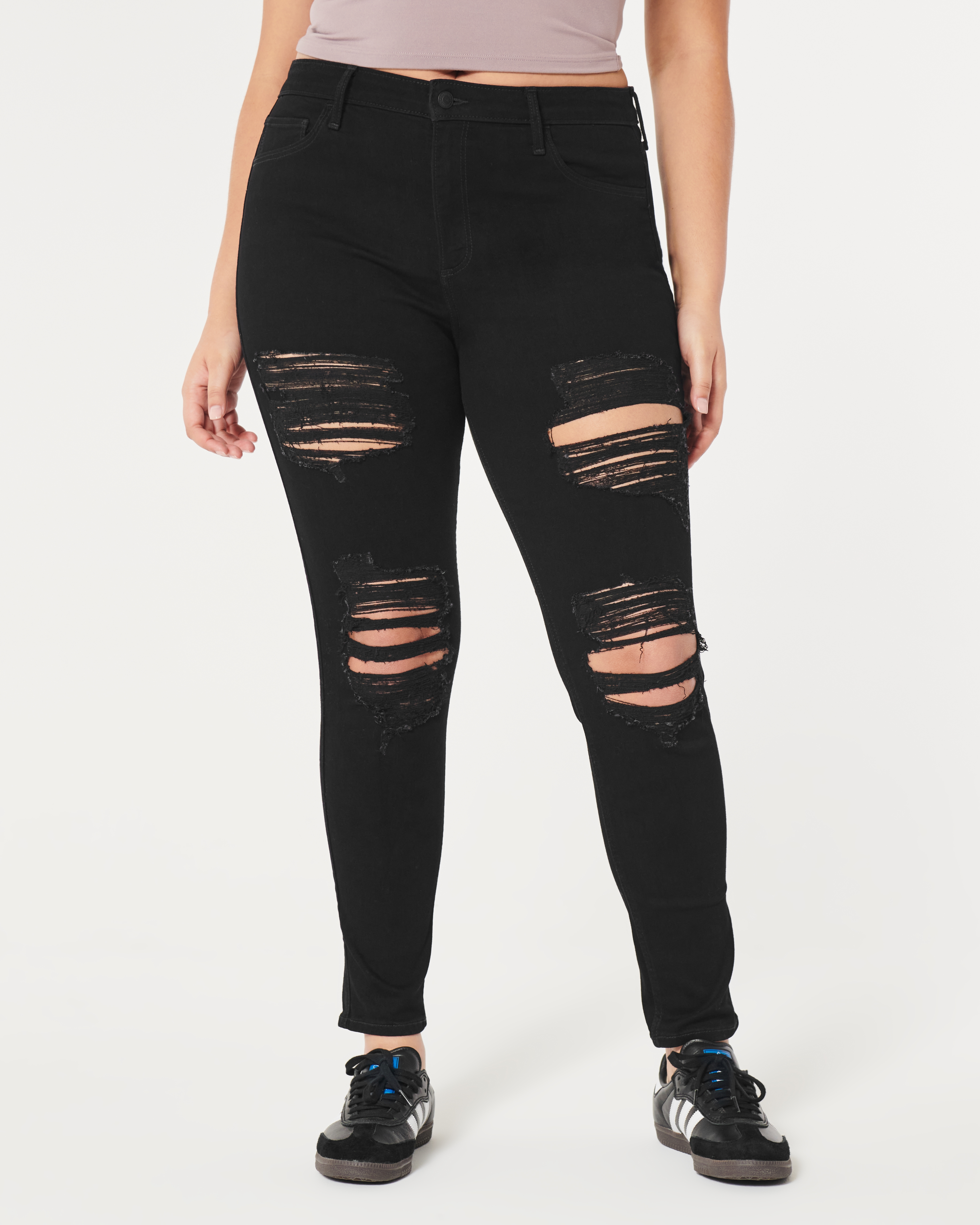 Hollister Curvy High Rise Ripped Black Super Skinny Jeans