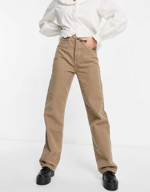 TOPSHOP ECRU CORDUROY RELAXED FLARED JEANS Ivory Women s Casual