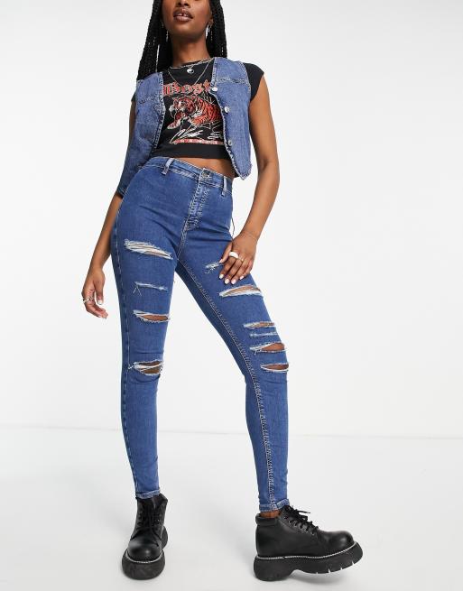 Topshop joni ripped skinny jeans in mid blue ASOS