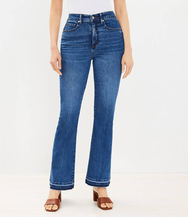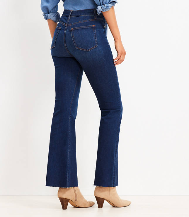 Curvy Unpicked Hem High Rise Slim Flare Jeans in Dark Wash
