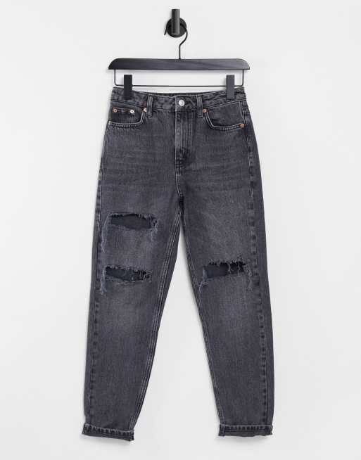 Black ripped mom clearance jeans topshop, Topshop Jeans Top Shop Very Ripped Black Mom Jeans Poshmark clearance