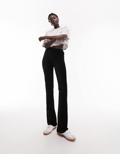 Topshop Pants Womens 12 Black Crushed Velvet Flare Elastic Waist