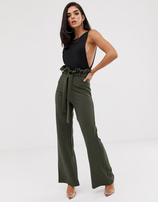 In The Style flared high waisted paperbag trousers ASOS