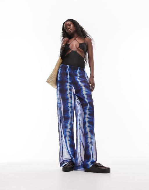 Topshop Tall batik print chiffon beach pants in blue part of a