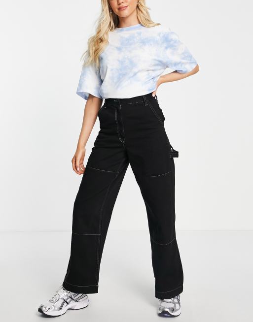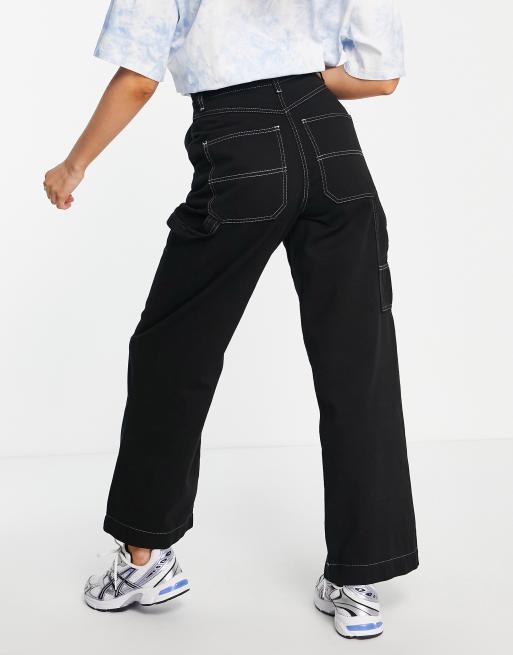 Topshop high waisted workwear straight leg cargo pants in black ASOS