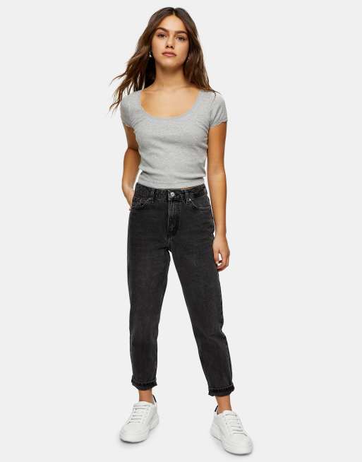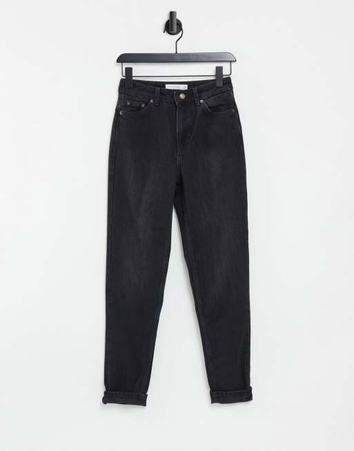 Topshop Petite Mom Jeans In Washed Black Mom Jeans Washed Black