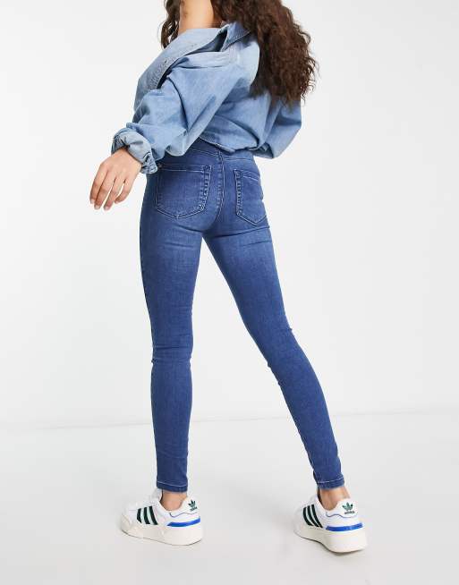 Only Petite Royal high waisted skinny jeans in mid blue ASOS