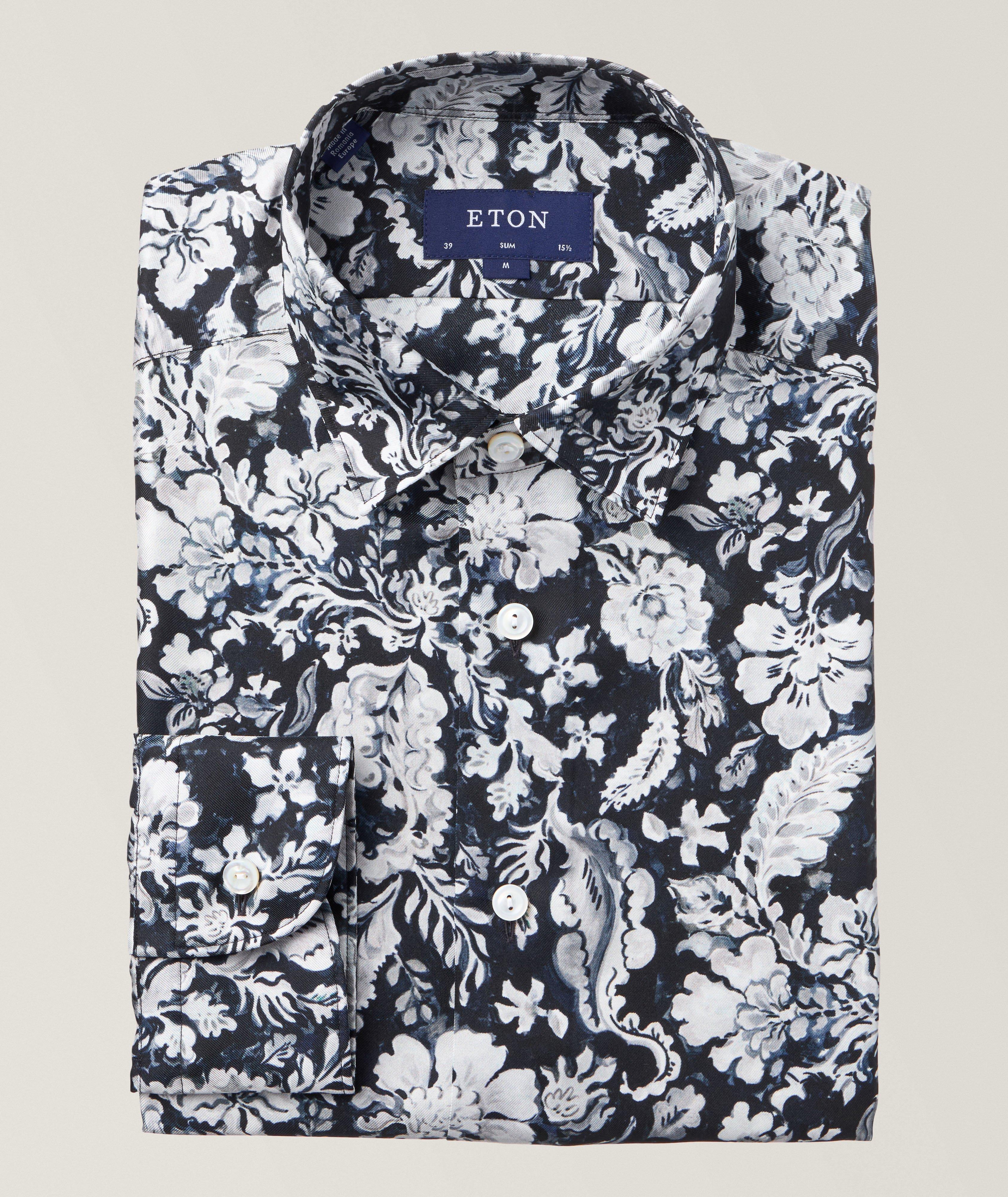 Mens slim fit clearance floral shirt, Slim Fit Floral Silk Shirt clearance