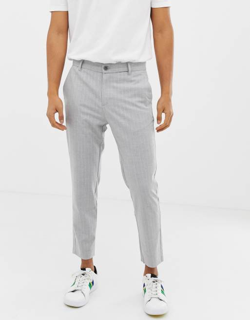 Bershka slim cropped fit pants in gray with stripes ASOS