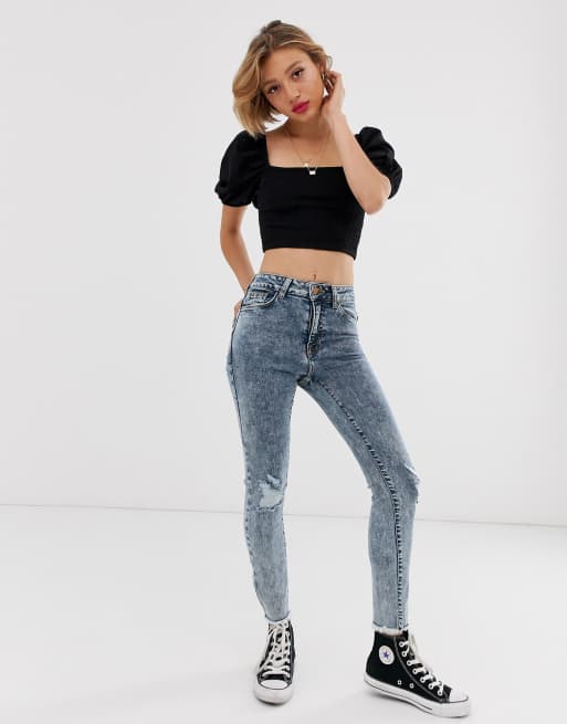 Petite clearance ripped jeggings, New Look Petite ripped jeans in acid blue ASOS clearance