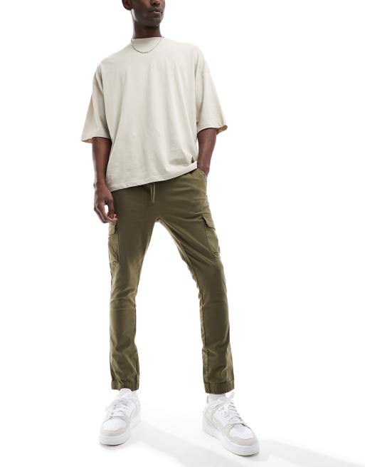 ASOS DESIGN super skinny cargo pants with cuff in khaki ASOS