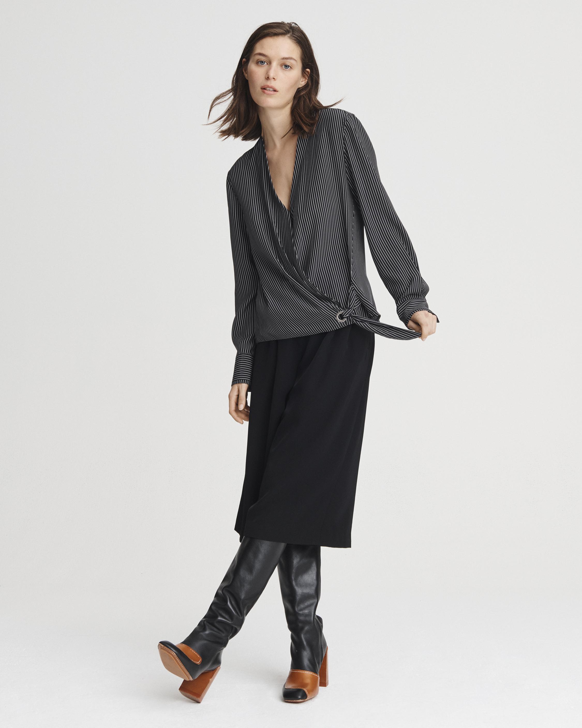 Rag Bone Silk Felix Stripe Silk Blouse SP Popover Waist Tie Blue 375