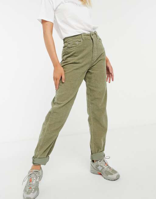 ASOS DESIGN high rise slouchy mom jeans in khaki cord