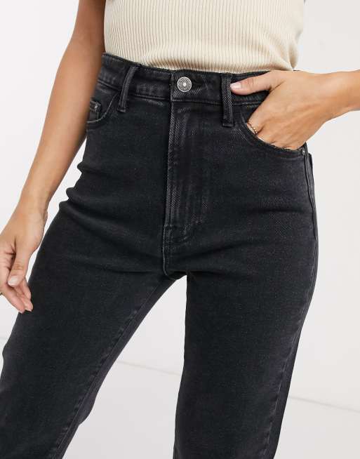 Stradivarius cotton slim mom jean with stretch in black ASOS
