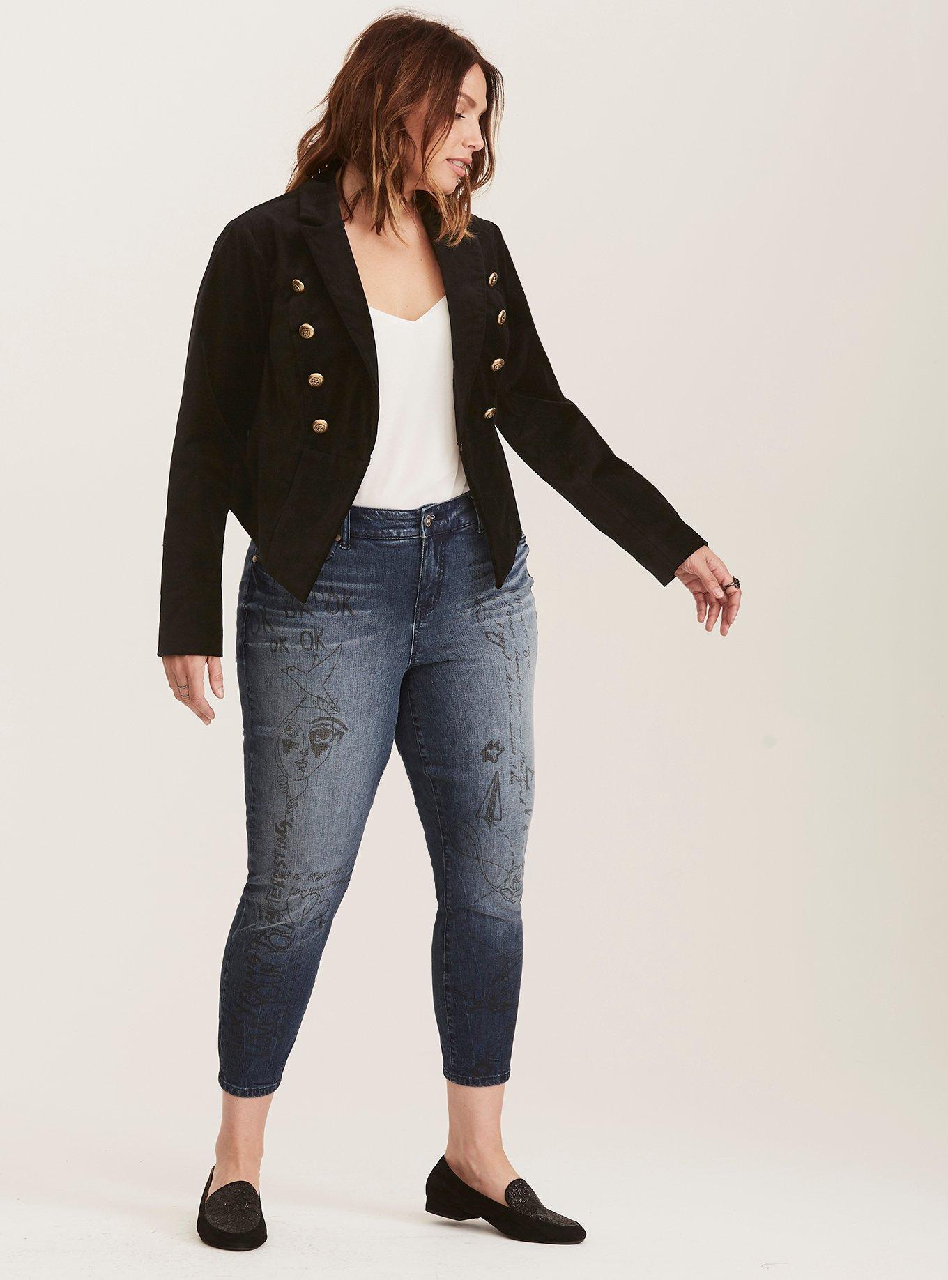 Plus Size Girlfriend Jeans Dark Wash with Doodle Art Torrid