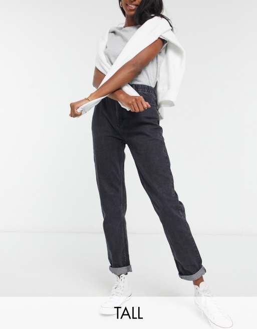 Pull Bear Tall elasticated waist mom jean in black ASOS